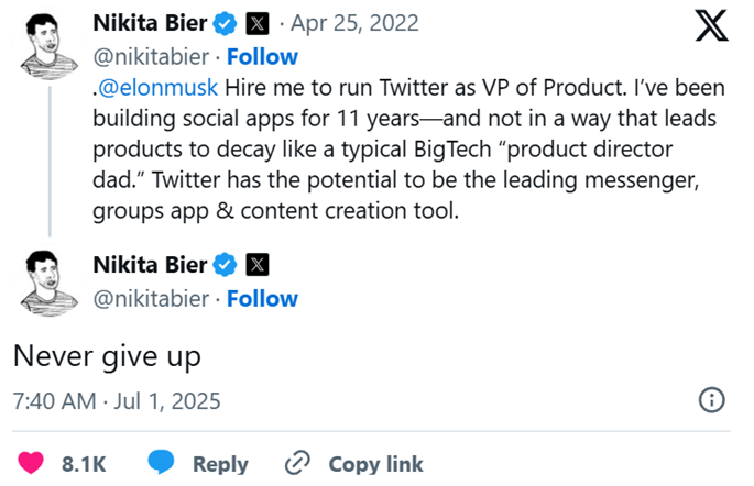 我大概是从2023年做社交产品创业开始就一直关注Nikita Bier,直到他去年加入X担任产品负责人,一直很想写写这个人。