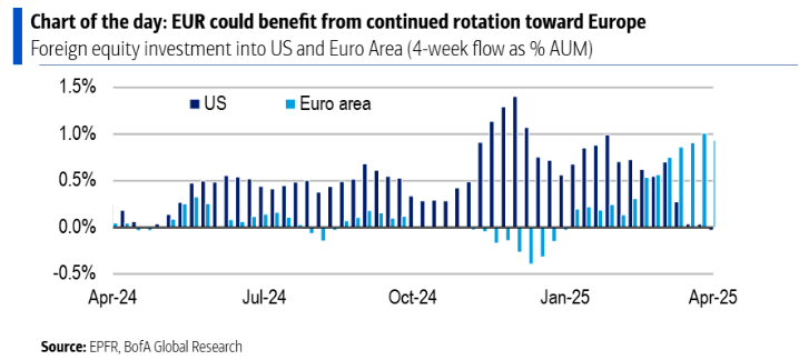 一是对等关税的逻辑翻转。特朗普在海湖庄园举出税率表后,高税率国家货币均大幅贬值,恐慌情绪爆表。但关税被证明只是谈判工具,贸易保护主义抬头,反而令拜登时期涌入美国的资金开始逆转。以欧元为首,新兴市场国家货币紧跟。