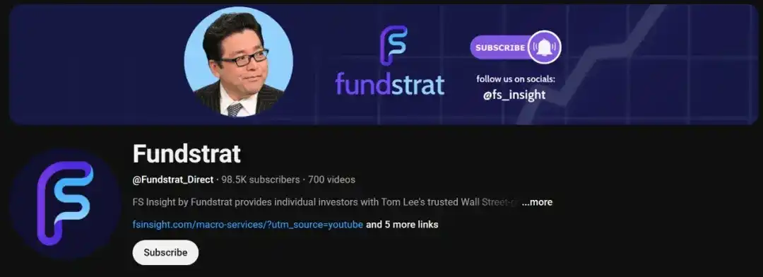 2. FS Insight /Fundstrat 的订阅模式本质是「研究变现」,官网页面直接呈现「Start Free Trial」等订阅引导,并展示 Tom Lee 作为宣传。Tom Lee 在 Fundstrat 是核心招牌人物,FS Insight 页面直接将其标注为「Tom Lee, CFA / Head of Research」。当流量与订阅增长更多来自 Tom Lee 在各媒体的公开采访时,公司如何让公众相信「这只是在表达个人观点」。