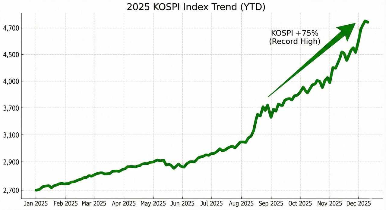同时 AI 把三星和海力士的估值逻辑彻底改写了。两件事撞在一起,外资涌进来,KOSPI 一年涨了 75.6%,全球第一。