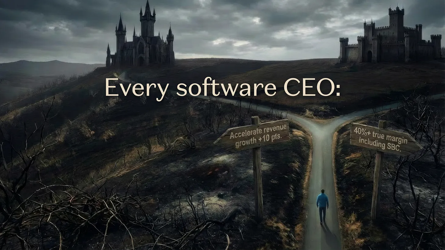 严格来说,这些举措并不相互排斥。但我认为,这个12到18个月的计划必须二选一。到明年年底,介于高增长和高利润这两条路径之间的所有状态,都将沦为无人区:面临增长压力、持续的股权稀释以及估值倍数压缩。今天的CEO们需要明确的举措,将其中一条路径作为最终目标来推进。