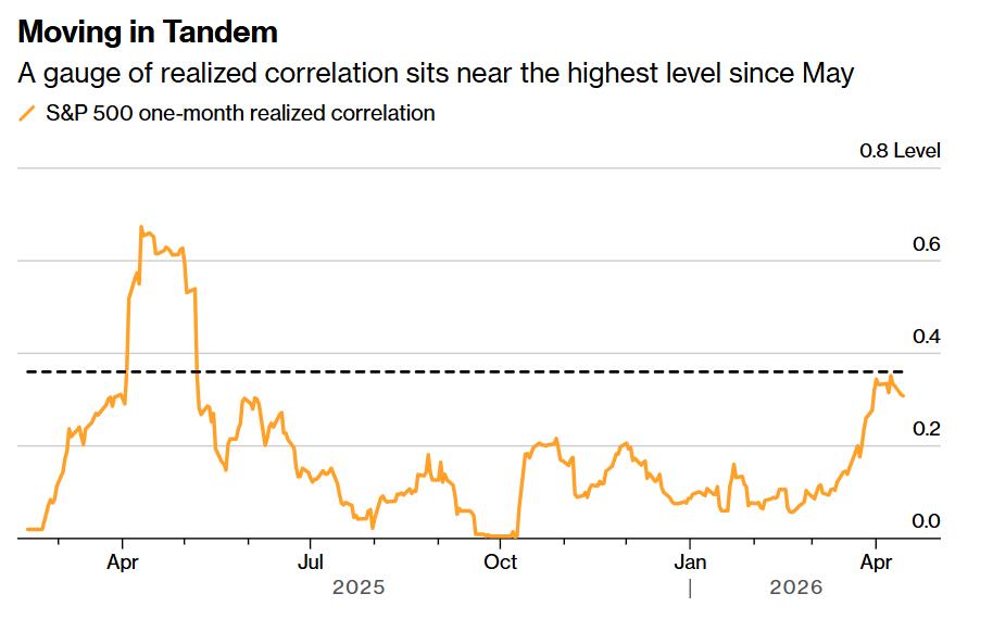 如上图所示,同步波动仍在上演——一项已实现相关性指标处于自5月以来的最高水平附近。