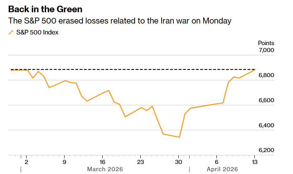 周一与周二的美股市场交易时段表明,围绕战争的焦虑情绪正在显著缓解。在上周末美伊未能在和平谈判中取得突破之后,标普500指数在周一市场开盘时基本持平,但到收盘时,股市上涨了1%。与此同时,这一美国股票基准指标之一也抹去了由战争驱动的全部跌幅。该指数周二又上涨了1.2%。自3月30日的阶段性低位以来,标普500指数的涨幅已经接近10%。